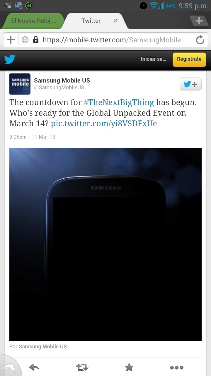 Hace varios minutos, en su cuenta de twitter, Samsung lanzó la primera imagen oficial del Galaxy S IV. La imagen nos presenta la parte frontal del dispositivo y se puede observar los bordes redondeados como en el Galaxy S III.