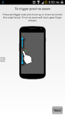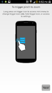 Nota: Esta aplicación requiere Root para trabajar. Esta aplicación te permite utilizar un solo dedo para hacer el "pinch to zoom" para ampliar las cosas en tu pantalla. Funciona en cualquier aplicacion o ventana que tenga habilitado el "pinch to zoom". Diga adiós a necesitar las dos manos para acercar y alejar el zoom en el navegador, correo electrónico, lector de libros o lo que sea!