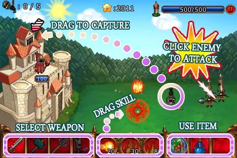 mejorar armas, habilidades y tus tropas para mantener su castillo con el dinero que gana.