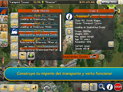 Transport Tycoon contiene todo lo que hizo al juego original para PC un clásico de todos los tiempos, además de una gran cantidad de nuevas características: mundos más grandes y ricos, una simulación más real y una gran variedad de vehículos de tierra, mar y aire. La intuitiva y nueva interfaz de la pantalla táctil hace que sea más fácil que nunca construir y mantener tu red de transportes.