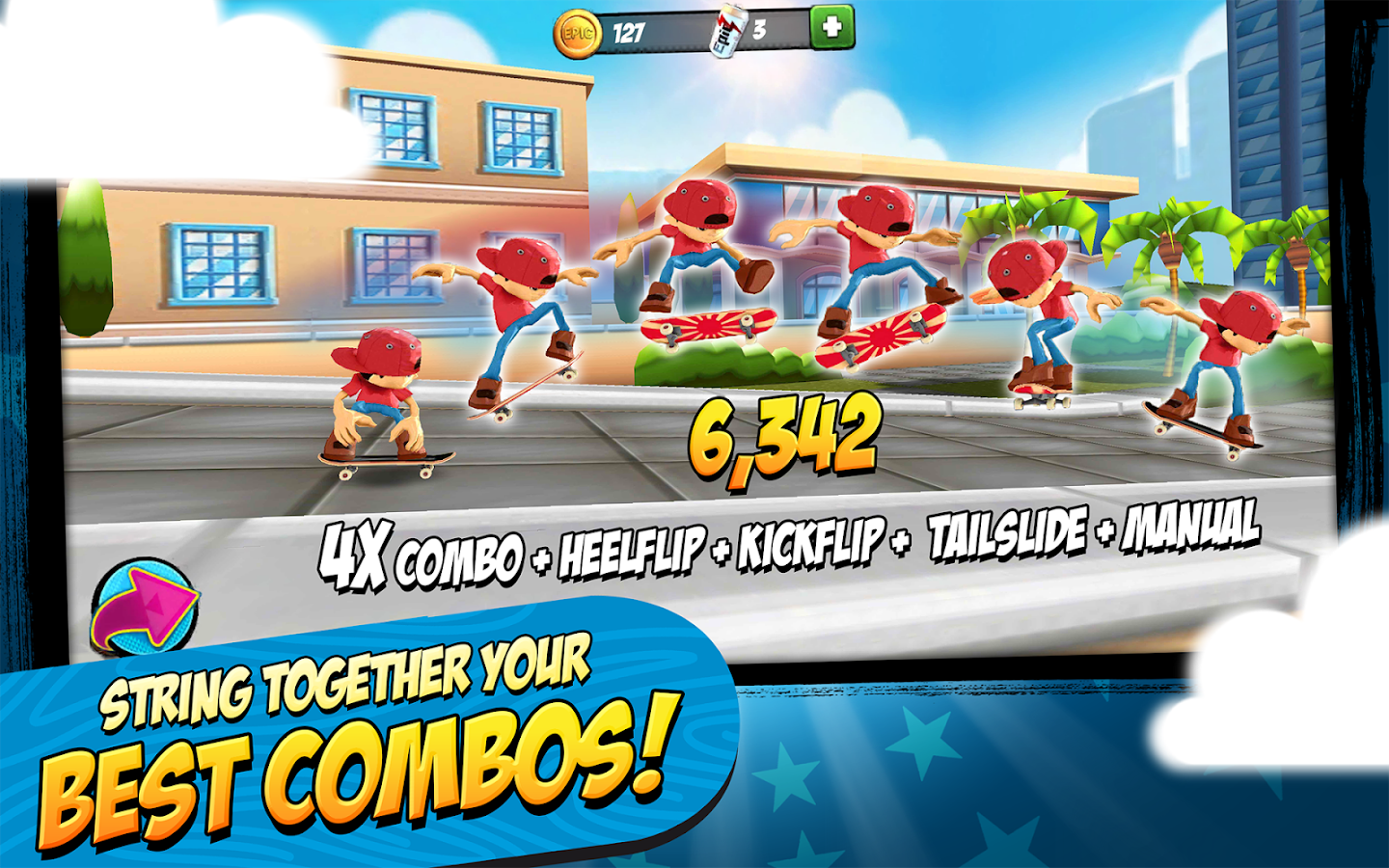Epopeya del patinador tiene algo para todo el mundo a medida que compiten en la distancia, el mayor combo, o mayor puntuación total. Jugar de la manera deseada.